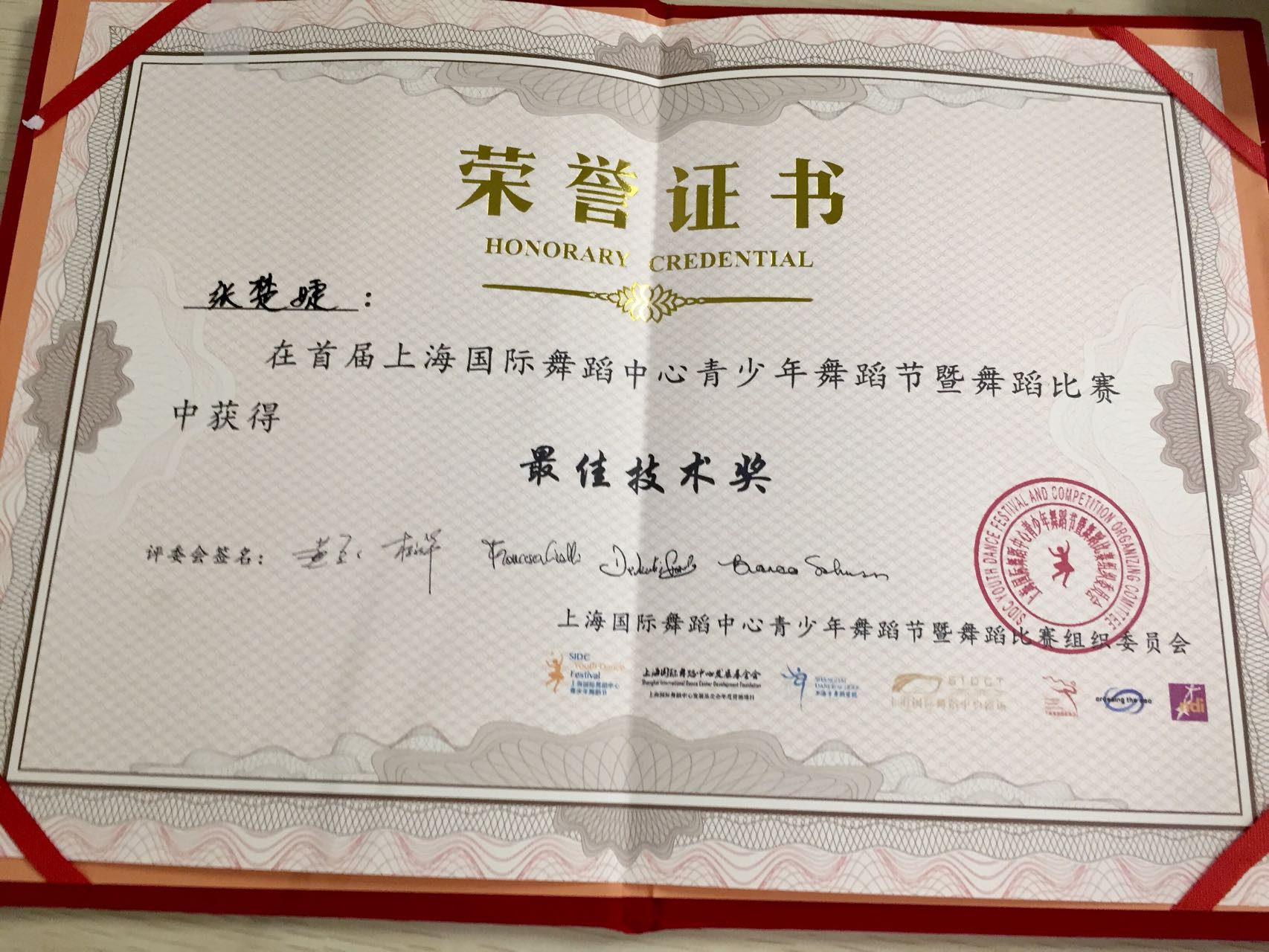 Shengzheng Cup Dance Competition First Place - - Certificate link Solo Lilic Fairy Variation Oct 7, 2016 Shanghai, China |